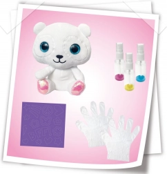 Ovaj kreativni set djeci nudi mogućnost da slatku plišanu pandu pretvore u originalnog maskotu po vlastitom ukusu. Zahvaljujući praktičnim bojama u atomizerima nanošenje boje je jednostavno i zabavno, a naljepnice gotovoj igrački dodaju osobit stil.