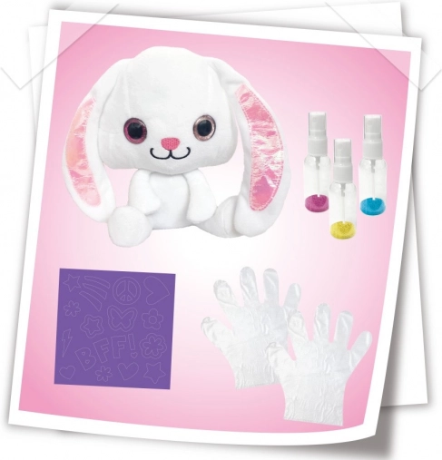 Kreativni set s plišanim zekanom za bojanje: 3 boje s raspršivačem, naljepnice i rukavice. Jednostavno, sigurno i zabavno stvaranje za djecu.