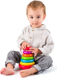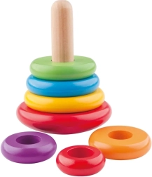 Ova igračka spaja dva izvrsna načina zabave – kao piramida i kao zvrk. Djeca nižu raznobojne drvene prstenove na štapić od najvećeg prema najmanjem i pritom razvijaju kreativnost i finu motoriku. Osim toga, igračku je moguće zavrtjeti kao zvrk, što dodaje još jednu razinu zabave.