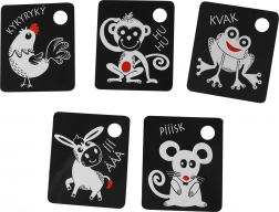 Podržite rani razvoj svoje bebe s kontrastnim karticama koje potiču vid i pažnju. Set sadrži 9 čvrstih kartica od hrvatskih materijala, s otvorom za vješanje i plastičnim prstenom za lako povezivanje. Kartice razvijaju vizualnu stimulaciju, finu motoriku i prepoznavanje životinja.