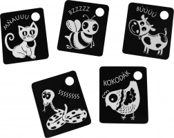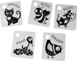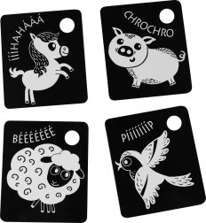 Podržite razvoj svoje bebe uz kontrastne crno-bijele kartice, pakirane po 9 komada od kvalitetnih čeških materijala. Svaka kartica ima otvor za vješanje, a u pakiranju se nalazi i plastični prsten za jednostavno spajanje. Kartice potiču vid, razvijaju finu motoriku i prirodnu znatiželju djece, uključujući upoznavanje životinja.