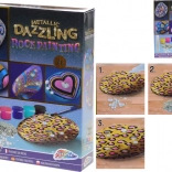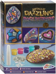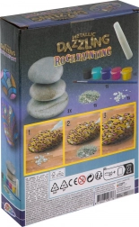 Stvarajte jedinstvene dekoracije i poklone s sjajnim metalik efektima. Set je prikladan za početnike i napredne – jednostavno otvorite boje, pustite mašti na volju i ukrasite prirodne kamenčiće originalnim uzorcima. Zahvaljujući šljokicama i samoljepljivim kamenčićima postić ćete dojmljiv rezultat u trenu.