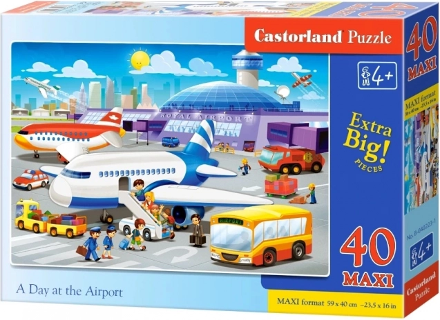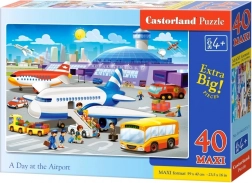 Šarene maxi puzzle za djecu s motivom DAN NA ZRAČNOJ LUCI: 40 velikih dijelova za lako slaganje, nakon sastavljanja dimenzije 59 × 40 cm. Kvalitetna izrada Castorland razvija finu motoriku, koncentraciju i maštu. Pogodno od 4 godine.