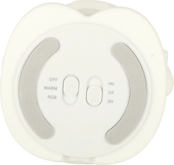 Možete birati dva načina svjetljenja – stabilno toplo bijelo s podešavanjem jačine i mijenjajuće RGB boje. Upravljanje je jednostavno dodirom ili gumbom na donjoj strani. Integrirani timer osigurava da se lampica sama ugasi nakon što dijete zaspi, a zahvaljujući ugrađenoj bateriji 1200 mAh svijetli do cca 11 sati s jednim punjenjem.