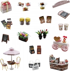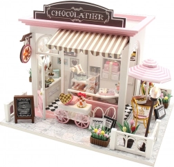 Čokoladarnica u nježnim ružičasto-bijelim tonovima djeluje poput malog izloga s vitrinama punim “poslastica”, stilskom tendom i preslatkim sjedećim kutkom. Gotov model prekrasno će izgledati na polici i biti originalan poklon za kreativne duše od 14 godina naviše.
