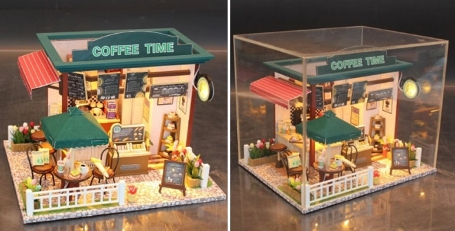 Otkrijte čaroliju minijatura s detaljnim setom za sastavljanje kafića Coffee Time. Složite šarmantni kutak s realističnom opremom, LED osvjetljenjem i bogatim priborom za izradu. Idealan za opuštanje, razvoj fine motorike, strpljenja i estetskog osjećaja – gotov model postaje stilska dekoracija vašeg interijera.