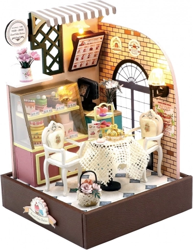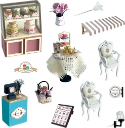 Stvorite svoju vlastitu ugodnu slastičarnu s minijaturnim stolićima, stolicama i vitrinom s desertima. Set stiže u rastavljenom stanju, sadrži detaljne upute i praktične alate za jednostavno sastavljanje. Gotov model djeluje kao realističan dioram, idealan za ljubitelje minijatura i stilskih dekoracija.