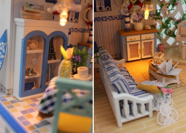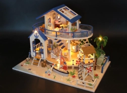 Izradite slikovitu kućicu u stilu primorskog ljetovališta s plavo-bijelom paletom, verandama i bogatom opremom namještaja i dekoracija. Precizno obrađeni detalji, funkcionalna LED svjetla i ugodna atmosfera čine je iznimnim komadom za interijer i odličnim projektom za slobodno vrijeme.