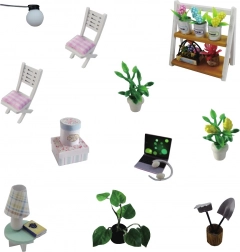 Minijatura nudi detaljan interijer s namještajem i dekoracijama, koje vjerno oponašaju stvarnu kuću.