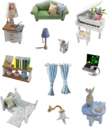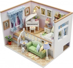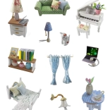Izradite vlastiti minijaturni interijer prepun realističnih detalja – udobnu sofu s jastučićima, elegantan klavir, krevet s tekstilnom opremom, svjetiljke, police i fine dekoracije. Integrirano LED osvjetljenje daje sceni ugodnu atmosferu i pretvara vaš uradak u jedinstvenu dekoraciju za policu ili radni stol.