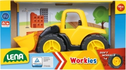 Dječji utovarivač Lena Workies od izdržljive ABS plastike s gumiranim kotačima i pocinčanom čeličnom osovinom (4 mm) idealan je za male graditelje. Lako se upravlja, potiče kreativnost i maštu te je prikladan za igru u zatvorenom i na otvorenom.