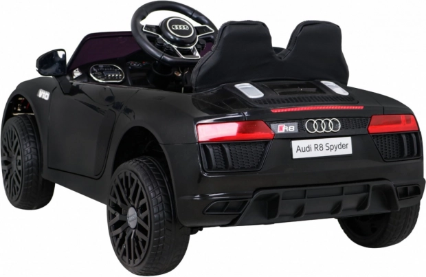 Mali vozač, veliko veselje. Električno vozilo AUDI R8 Spyder u elegantnoj crnoj boji nudi atraktivan izgled pravog sportskog automobila, jednostavno upravljanje i sigurnu vožnju. Zahvaljujući dvama motorima od 35 W i glatkom pokretanju vožnja je udobna i stabilna, dok prednji i stražnji ovjes ublažavaju neravnine.
