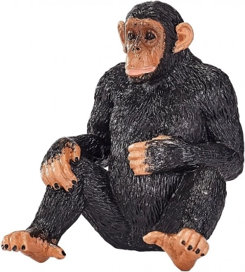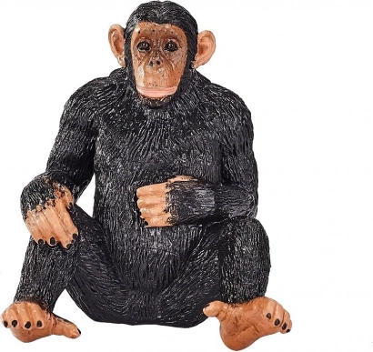 Ova figurica šimpanze u sjedećem položaju vjerno prikazuje život u afričkoj prirodi, s fokusom na mimiku i detalje.