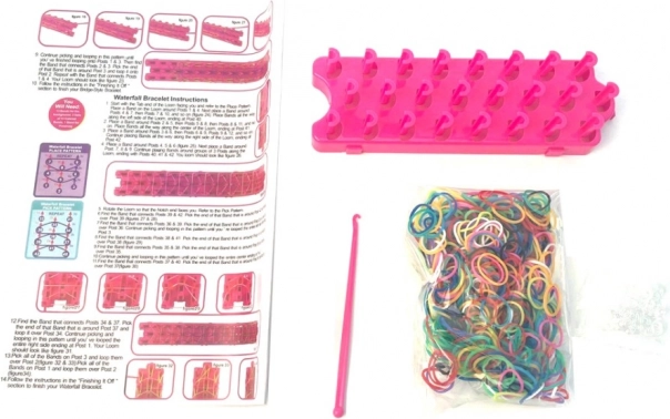 Započnite stvaranje s kreativnim setom LOOM BANDS: u pakiranju ćete pronaći 600 gumica, tkalački okvir, kukicu, kopče i upute. Jednostavno izradite originalne narukvice i ukrase za sebe i prijatelje; po želji ih nadopunite perlicama ili privjescima (nisu dio pakiranja).