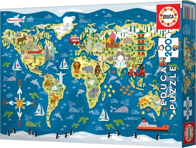 Otkrijte svijet s ovim privlačnim puzzleom karte svijeta marke EDUCA. Sa 200 dijelova idealan je za mlade istraživače.