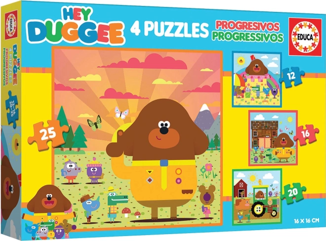 Ove slagalice idealne su za djecu koja žele zabavan izazov sa svojim omiljenim likovima iz Hey Duggee. Sadrže četiri različite slagalice koje postupno povećavaju težinu: