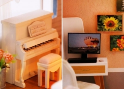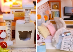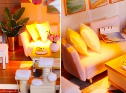 Model je izrađen od kombinacije drva, papira i tkanine, zbog čega djeluje realistično i kvalitetno. Interijer krase minijaturni namještaj i dekoracije koji naglašavaju atmosferu malog doma. LED svjetla (napajanje 2× AAA, nisu uključene) daju sceni živost i navečer stvaraju ugodnu atmosferu.