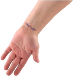 Uporaba je jednostavna: odlijepite šablonu, prislonite je na odabrano mjesto, pažljivo ispunite oblike, ostavite tintu da se suši oko 10 minuta i uklonite šablonu. Rezultat su čisti i izražajni motivi.