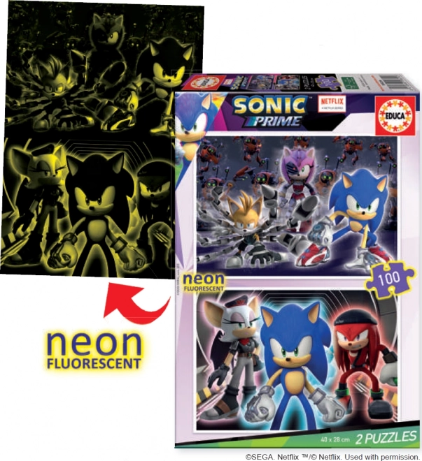 Otkrijte svijet magije i zabave s fluorescentnim slagalicama Sonic Prime tvrtke Educa. Ovaj set sadrži dvije slagalice istih dimenzija i broja dijelova: