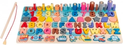 U sklopu ploče nalazi se magnetski štap koji djeci omogućuje isprobati ribolovnu igru s pojedinim komadićima.