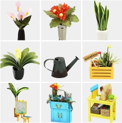 Otkrijte čaroliju minijatura s modelom Robotime Mini Staklenik. U kutiji ćete pronaći unaprijed izrezane dijelove od šperploče, papirnate otiske, tekstilne i metalne elemente koji će nakon bojanja i lijepljenja stvoriti dojmljiv staklenik prepun biljaka i vrtnih dodataka. LED osvjetljenje gotovom modelu daje toplu i ugodnu atmosferu.
