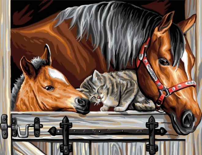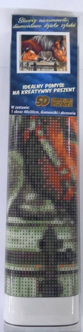 Dijamantno slikanje je kreativna zabava za svakoga koja nudi sate ugodne relaksacije. Pomoću aplikacijskog pera lijepit ćete sitne “dijamantne” kamenčiće na označena mjesta na platnu i postupno stvoriti blistavu sliku s motivom konja i mačke. Nisu potrebne nikakve umjetničke vještine – dovoljno je slijediti legendu simbola.