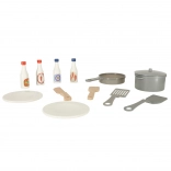 Set sadrži bogat set pribora, uključujući plastičnu tavu, lonac s poklopcem, drveni pribor i tanjure. Za usavršavanje jela ne nedostaju ni četiri različite vrste umaka.