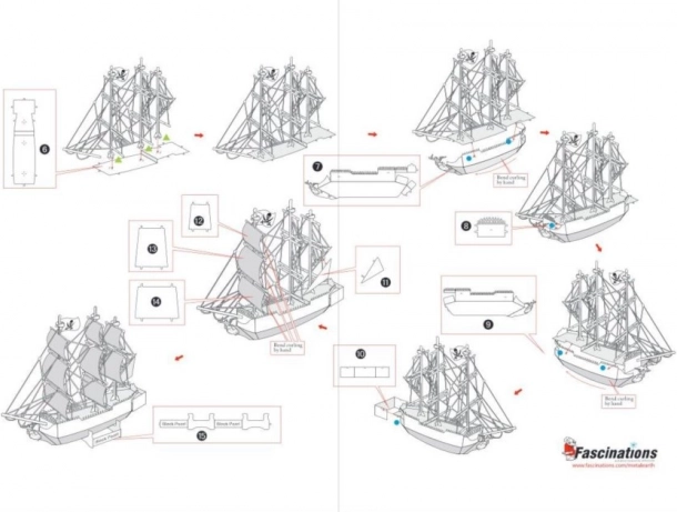 Laserski gravirana jedra, jarboli i trup stvaraju impresivan i vjeran izgled slavnog broda BLACK PEARL.