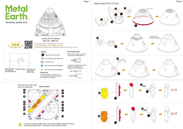 Pojedine dijelove izvadite iz metalnih pločica; po potrebi upotrijebite male kliješta-štipačice (nisu uključene). Dijelovi se spajaju pomoću zasuna koji se sastoje od jezička (kukice) i otvora. Jezičak savijte malim tankim kliještima (nisu uključena) te postupno spojite sve zasune dok ne nastane vrlo realističan majstorski komad!