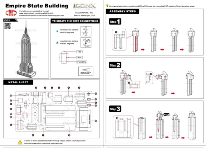 METAL EARTH 3D puzzle Empire State Building idealan je za one koji vole pogled na složen model pun detalja. Ovaj model iz premium serije ICONX ističe se svojom finom preciznošću i visokom razinom autentičnosti. Izrađen je od čeličnih ploča i zahtijeva vješte ruke i strpljenje.