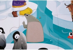 Uđite s djecom u fascinantan svijet iza polarnog kruga. Ove taktilne puzzle spajaju radost slaganja s otkrivanjem različitih tekstura – neki dijelovi imaju posebne površine koje potiču osjet dodira i pomažu djeci upoznavati polarne životinje ne samo očima, već i dodirom.