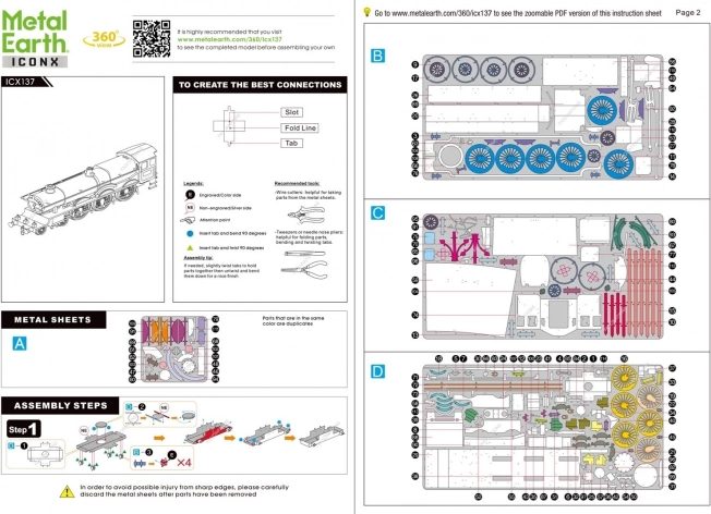 Sastavljanje je čisto i intuitivno – dijelove jednostavno istisnete iz čeličnih listova i spojite pomoću zasuna, tako da nije potrebno ljepilo. Za ugodniji rad preporučujemo fina kliješta i male rezačice (nisu uključene). U pakiranju se nalaze i pinceta te pregledne upute koje će vas voditi kroz cijeli proces.