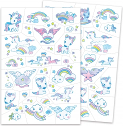 Privremene tetovaže DJECO s motivima jednoroga idealan su izbor za dječje proslave, karneval i svakodnevnu zabavu. Djeca mogu ukrasiti ruke, lice i noge veselim i nježnim sličicama, koje su dermatološki testirane za sigurnu upotrebu.