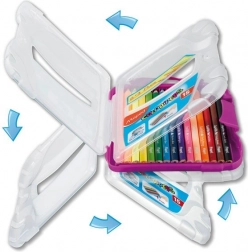 Pametni plastični etui s polugastim mehanizmom olakšava organizaciju i brz odabir boje. Set je idealan za školu, radionice i dom – sve potrebno uvijek vam je pri ruci.