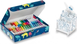 Ovaj praktični kreativni kovčežić djeci od 5 godina nudi sve što im je potrebno za sate zabavnog stvaranja. Zahvaljujući raznolikom izboru pribora za pisanje i crtanje, djeca mogu isprobati različite tehnike, razvijati kreativnost i stvarati originalne crteže. Dio seta je i kartonska kutija za bojanje koja nakon sastavljanja služi kao stalak za olovke i bojice.