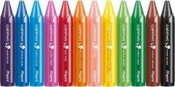 Sigurne voštane bojice za djecu od 1 godine u setu od 12 boja. JUMBO trokutasti oblik Ø 13 mm za pravilan hvat, papirnati omot protiv prljanja ruku, intenzivne boje i mekko crtanje, netoksično.