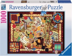 Ravensburger puzzle Klasične igre od 1000 dijelova remek-djelo su koje prikazuje vintage dizajn igara. Sa dimenzijama složene puzzle 70 x 50 cm svjedočit ćete raznolikoj kolekciji elemenata igara. Zahvaljujući tehnologiji Softclick tvrtke Ravensburger, dijelovi precizno pristaju, što donosi zadovoljstvo i uglađeno slaganje.