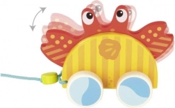 Ova šarena vučna igračka u obliku raka izrađena je od kvalitetnog punog drva, što osigurava njezinu dugotrajnost i sigurnost za djecu. Kotačići igračke podsjećaju na morske valove, što je čini razigranim i upečatljivim dijelom dječje sobe.