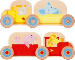 Drvena slagalica Moj mali vlakić savršen je način da svoje dijete upoznate s čarolijom slagalica. Sastoji se od 16 dijelova, uključujući dvije lokomotive i dva vagončića koji voze životinje na izlet.