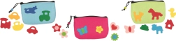 Ovaj kreativni set brenda Goki nudi zabavno i jednostavno stvaranje za djecu. U pakiranju se nalazi filcana torbica s patentnim zatvaračem u jednoj od triju varijanti boja te set šarenih samoljepljivih aplikacija koje se, za veću trajnost, mogu i prišiti. Svaka torbica je jedinstvena – motivi se razlikuju ovisno o boji i dostupnosti na skladištu.