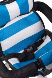 Sigurnosni pojasevi drže dijete u ispravnom položaju na sjedalu, a poseban osigurač između nogu sprječava klizanje. Ako dijete ne doseže do pedala, može osloniti noge na sklopive oslonce, koji se mogu sklopiti kako ne bi smetali pri pedaliranju.