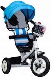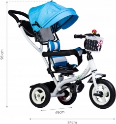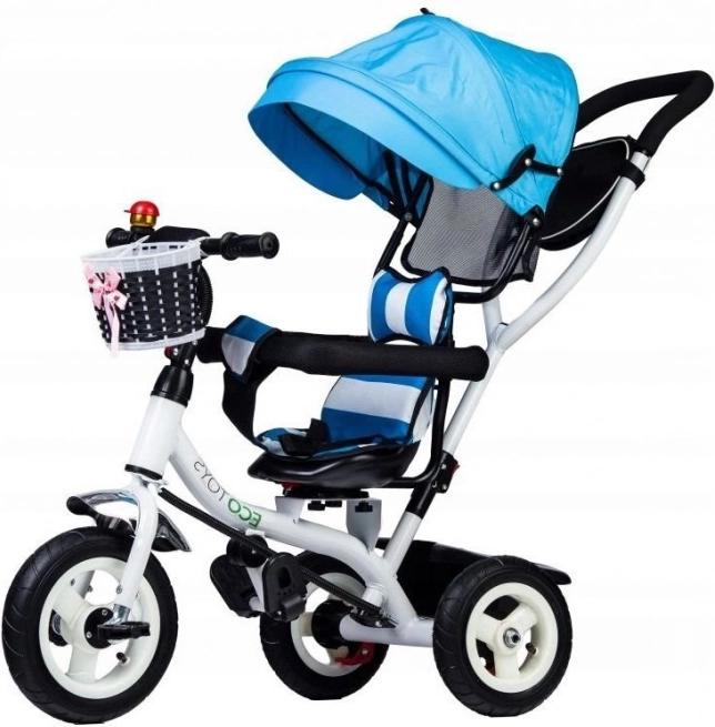 Ova trokolica marke ECOTOYS dizajnirana je kako bi vašem djetetu pružila sigurnost i udobnost tijekom igre i šetnji. Meko naslonjalo zajedno s sigurnosnim pojasevima i zaštitnim prečkama osigurava da dijete ostane sigurno na mjestu. Sklopiva tenda štiti djecu od nepovoljnih vremenskih uvjeta, a rotirajuće sjedalo olakšava ulazak i izlazak.