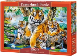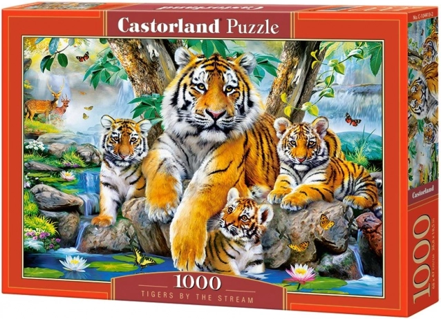 Sklapanje slagalica je kreativna zabava koja razvija pažnju, uči upornosti i trenira koncentraciju. Ova slagalica od 1000 dijelova prikazuje Tigrove uz potok i nudi sate zabave za pojedince ili grupu.