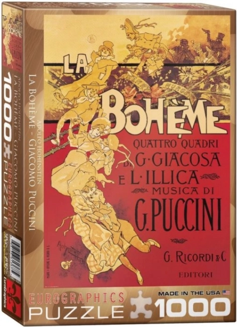 Uživajte u jedinstvenom iskustvu slaganja s puzzle EUROGRAPHICS La Bohème od 1000 dijelova. Zahvaljujući nestandardnoj matrici s neobičnim oblicima dijelova puzzle pružaju višu razinu težine i zabavan izazov za iskusne slagatelje. Sastavljena slika ima dimenzije cca 48,89 × 67,63 cm.