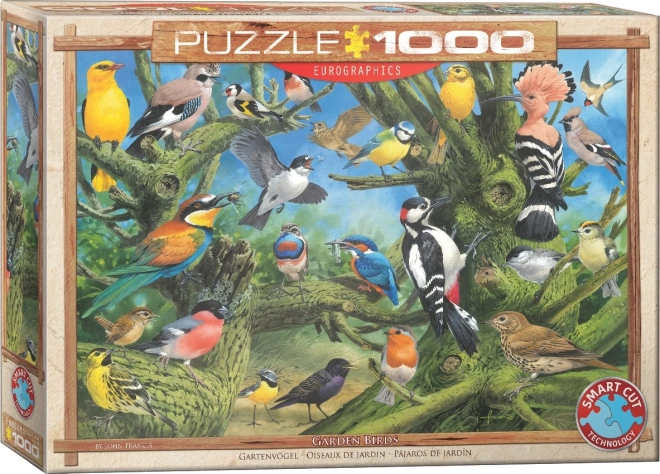 Otkrijte zabavu i izazov s EUROGRAPHICS puzzleom Ptice u vrtu – 1000 dijelova s neobičnim oblicima zahvaljujući izrezima koji ne prate standardnu mrežu. Nakon slaganja slika je približno 67,63 × 48,89 cm.