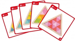 Kreativna drvena slagalica za najmlađe razvija finu motoriku, percepciju boja i oblika te logičko razmišljanje. Uz 60 šarenih trokutića i predloške djeca slažu raznolike uzorke u okviru ili slobodno prema mašti.