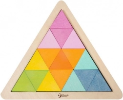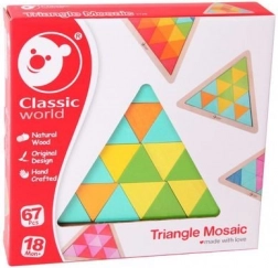 Otkrijte zabavnu edukativnu igračku koja potiče dječju maštu i koncentraciju. Drvena mozaična slagalica trokut CLASSIC WORLD donosi šarene trokutiće s kojima djeca lako stvaraju uzorke i slike u čvrstom drvenom okviru ili izvan njega. Zahvaljujući obostranim karticama s predlošcima mogu započeti s jednostavnijim motivima i postupno povećavati težinu.