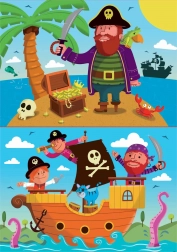 Uživajte u zabavi s piratskim motivom uz puzzle tvrtke Educa. Sastavljanje puzzli pomaže razvijati dječju maštu i motoričke vještine. Ovaj set sadrži dvije slike, svaka dimenzija 28 x 20 cm, koje zajedno stvaraju prekrasan piratski svijet.