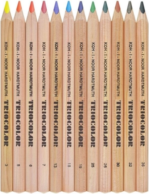Trokutaste bojice KOH-I-NOOR Triocolor iz kolekcije Umjetnost podržavaju pravilno držanje pisaćeg pribora i udobnost pri crtanju. Prirodno drvo pomaže sigurnom hvatu, smanjuje znojenje ruke i sprječava klizanje po površini bojice. Zahvaljujući jakoj jezgri pružaju intenzivan, ujednačen kolorni trag i dobro podnose grublje rukovanje.