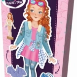 Ova magnetička lutka razveselit će male ljubitelje mode i stvaranja. Zahvaljujući 30 magnetskim dijelovima, moguće je jednostavno kombinirati različite outfite, mijenjati cipele i dodatke te svaki put osmisliti novi stil. Stabilno drveno postolje drži lutku na mjestu tijekom igre i olakšava izlaganje gotovih kreacija.
